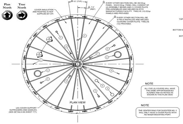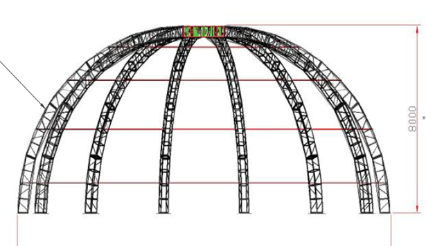 Description: Design of the Dome/shell over the Bio-Digester, diameter = 64’.