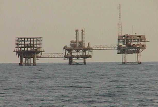 Full-scale vibration tests were conducted on these offshore platforms in the Persian Gulf.