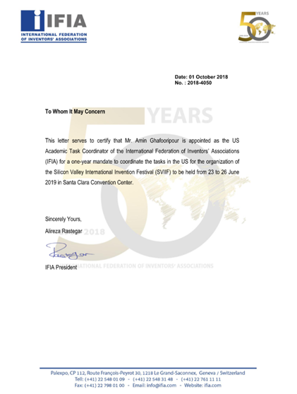 Left to right: Dr. Alireza Rastegar (IFIA President), Ms. Lisa Gilmore (The Mayor of Santa Clara),