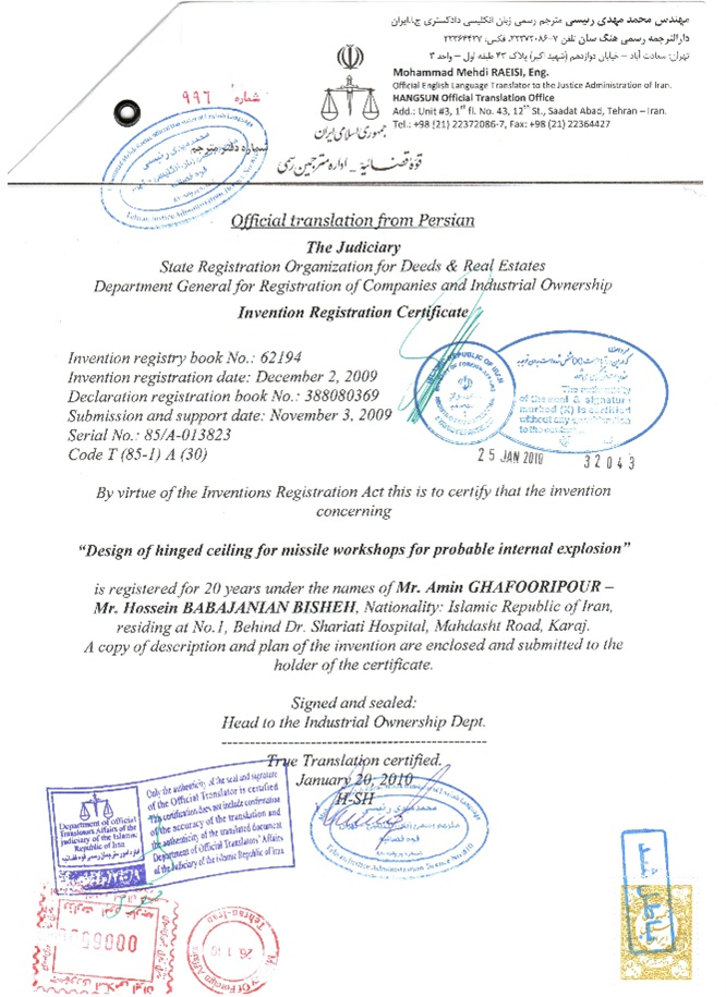 Invented by Dr. Amin Ghafooripour – Exhaust door system for missile repair workshops (designed for internal explosion)