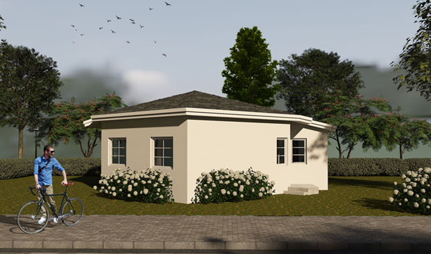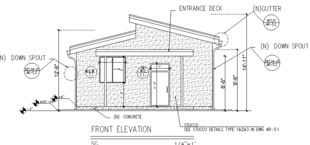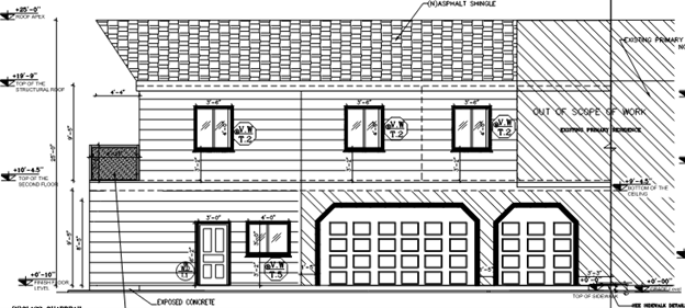 Description: A 941 sf detached ADU was designed with unique architecture.