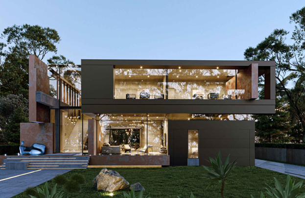 • Structural design with special features such as using special steel moment frame structure, and metal stud walls.