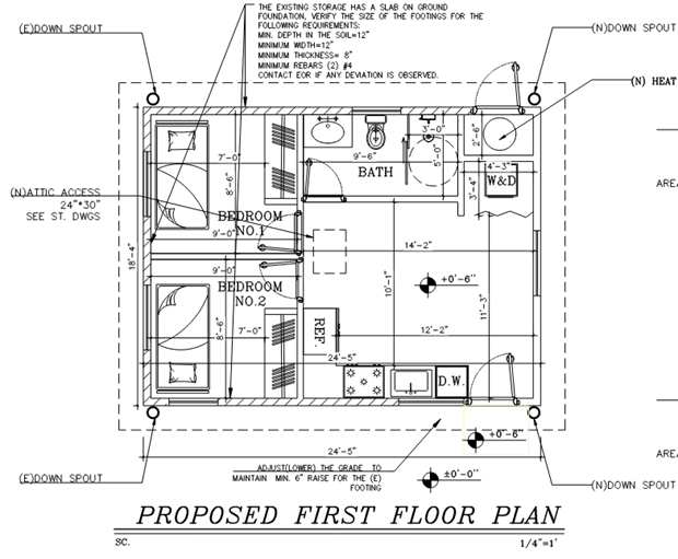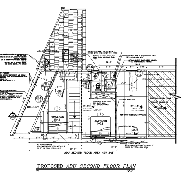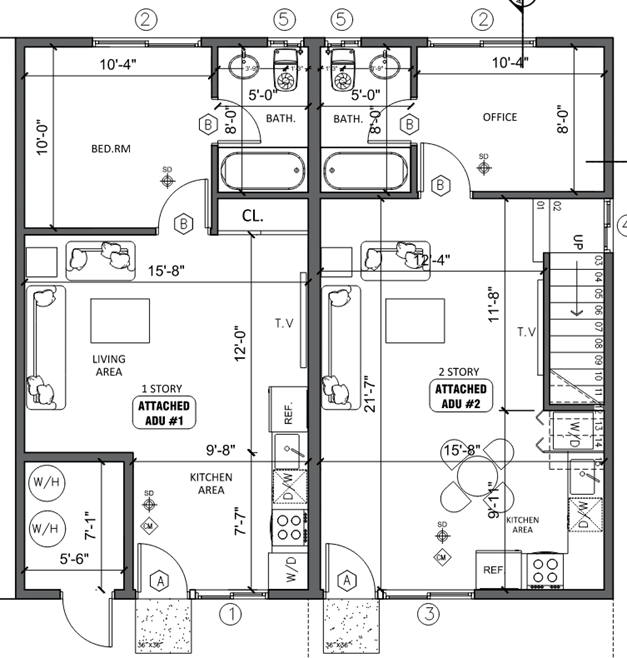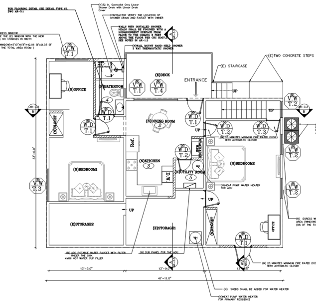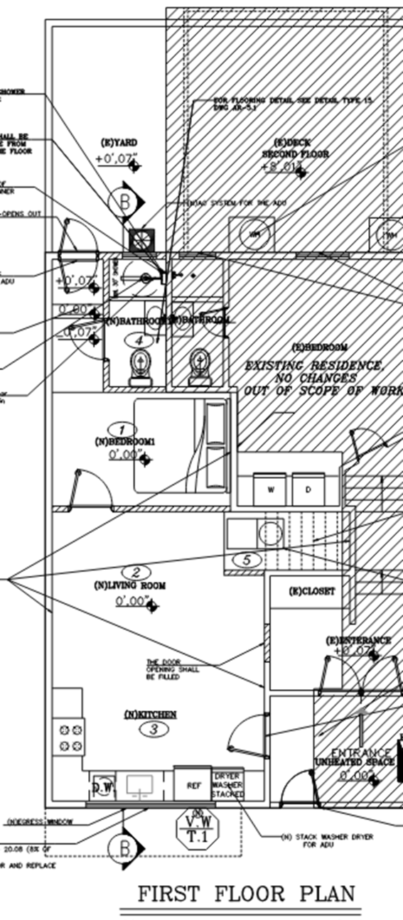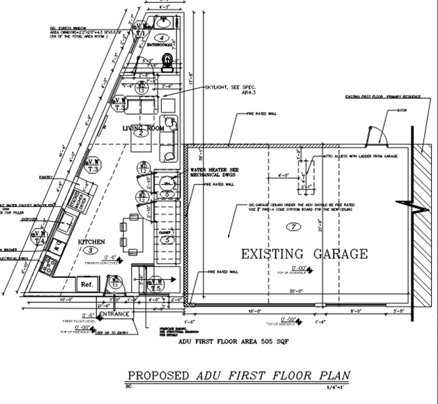 Description: A 420 sf ADU was designed in the existing 1st floor plan.