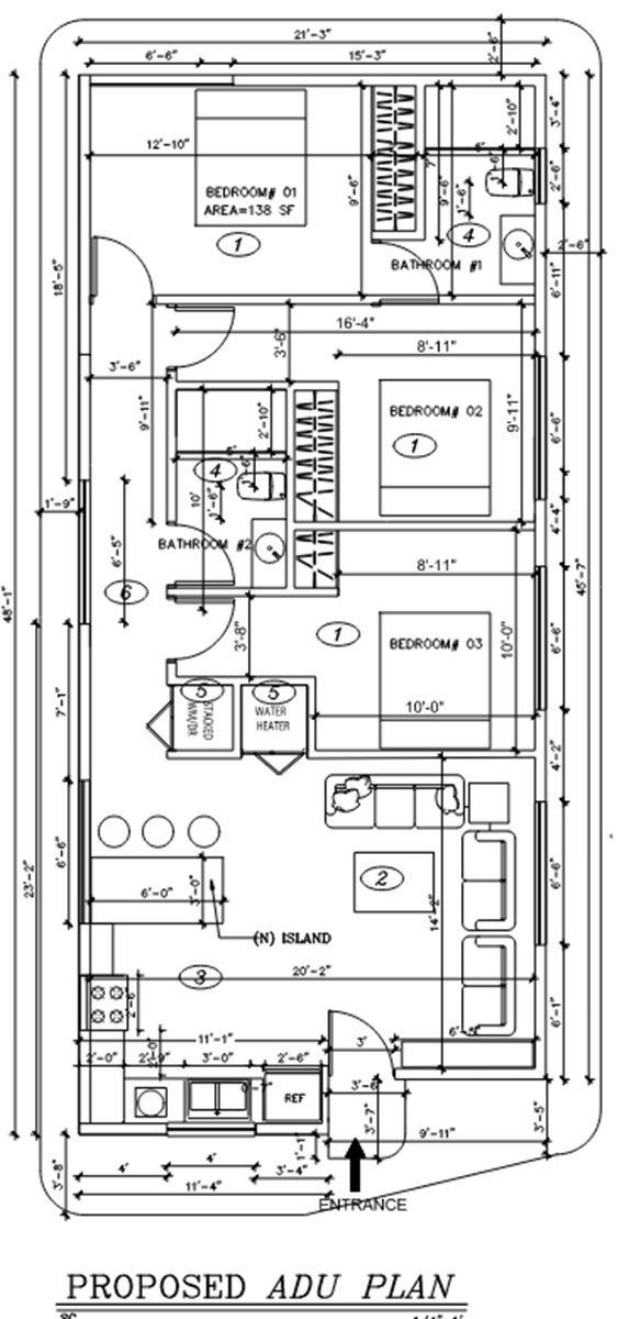 Description: A 900 sf ADU was designed in the existing basement, and it has been converted to an ADU.