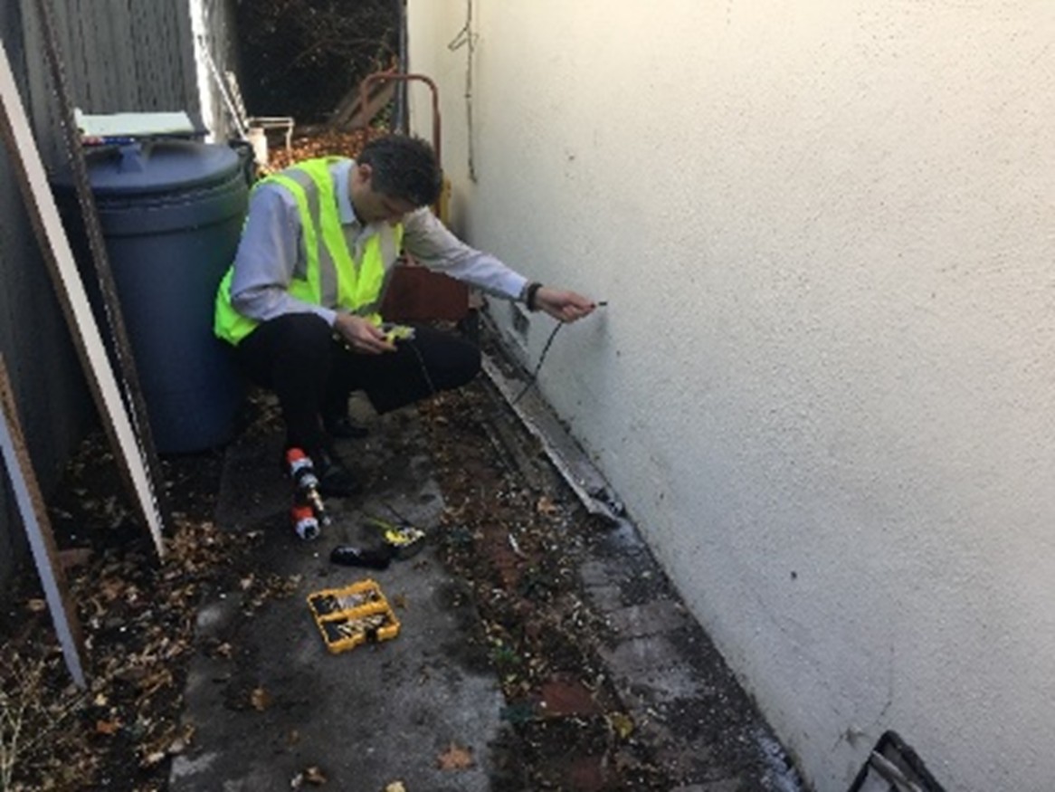 Crack width by caliperFloor level measurement by laserFloor level measurementGuardrail height measurementDamage detectionBorescope is used to identify problems inside confined areasBorescope is used to identify problems inside confined areasFloor level measurements — width of crack by caliperFloor level measurements — width of crack by caliperMoisture measurementsMoisture measurementsMoisture measurementsMoisture measurementsThermal inspectionAngle measurementRetaining wall damage evaluationDamage detectionDamage detection