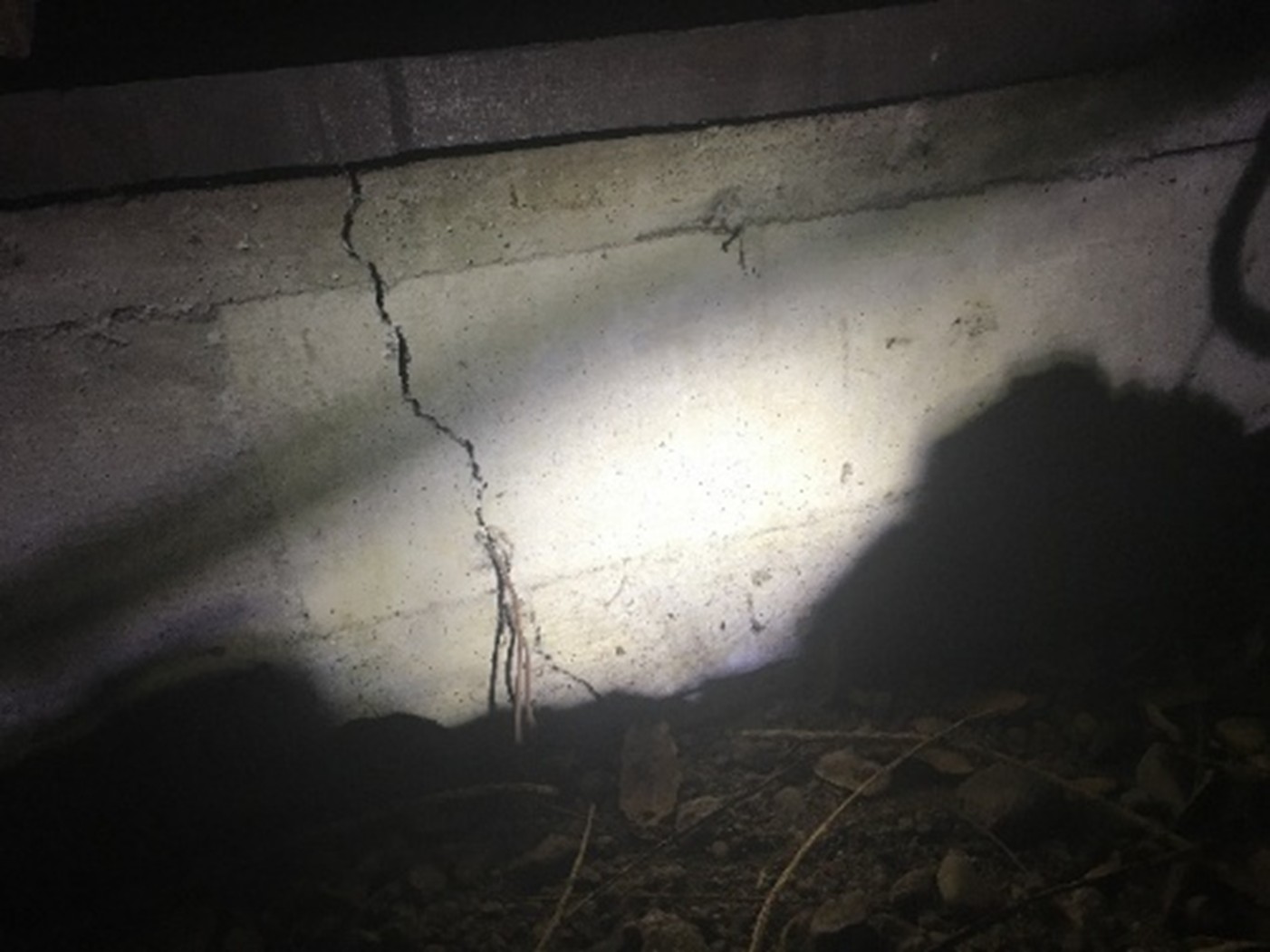 Determination of the location of the downspouts and their effect on the foundation’s cracks.